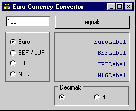 := 1; // first radiobutton is for Euro end; Euro := Amount / CFactor; // ...and