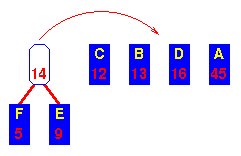 משולבים יחד, ויוצרים תת-עץ במשקל 14. תת-העץ החדש מועבר למקומו הנכון:
