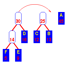 יחד שני בעלי המשקל הנמוך ביותר C ו- B ויוצרים תת-עץ במשקל 25. תת-העץ מועבר למקומו הנכון :