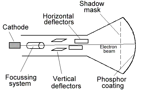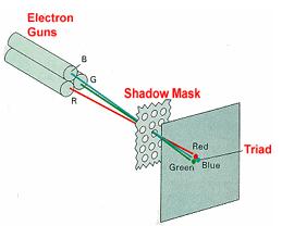 מסך CRT צבעוני מכיל שלושה תותחי אלקטרונים. כל תותח אלקטרונים