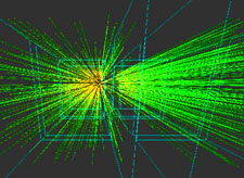 יון המתנגש עם יון אחר, יוצר עד כ- 2000 חלקיקי לוואי הנצפים על ידי כ-