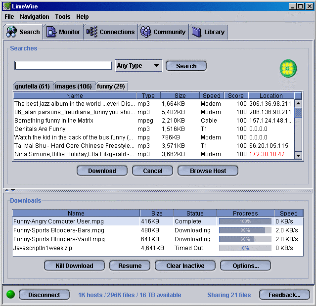 של Gnutella כגון LimeWire,
